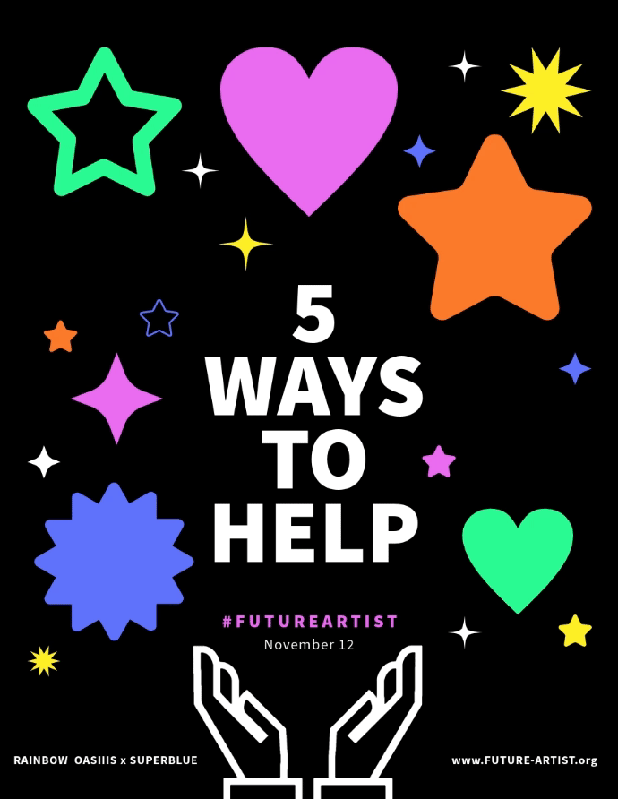 Help us reach a wider audience by sharing information about the Future Artists program with your friends, family, and colleagues. Utilize social media platforms like Instagram and Facebook to raise awareness, and inspire others to join our cause by getting involved or making donations.